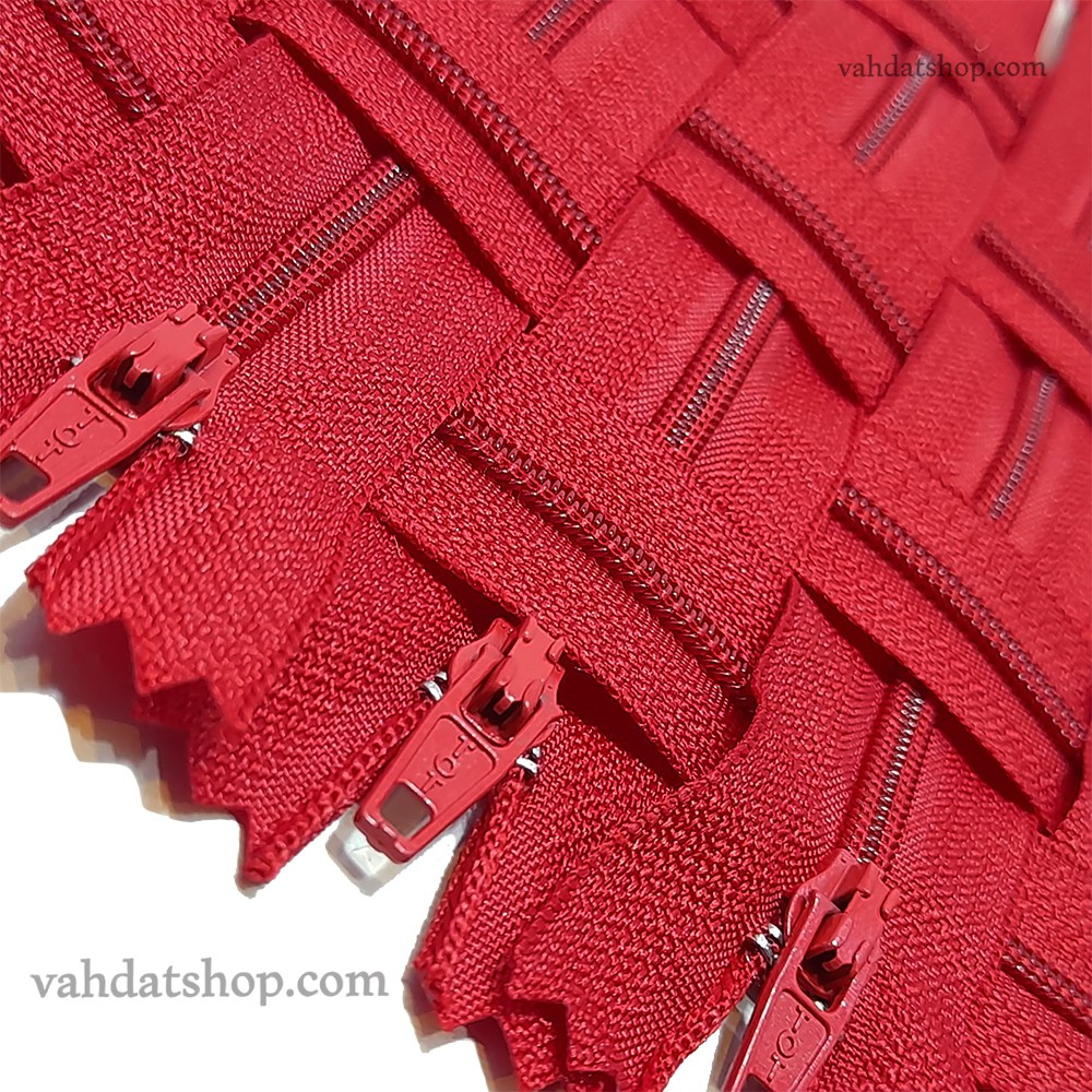 زیپ 20 سانت دنده 3 قرمز کد 519 بسته ای
