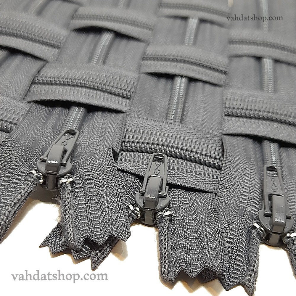این نوع زیپ دارای دندانه های پلاستیکی و ماشین زیپ اتوماتیک است.