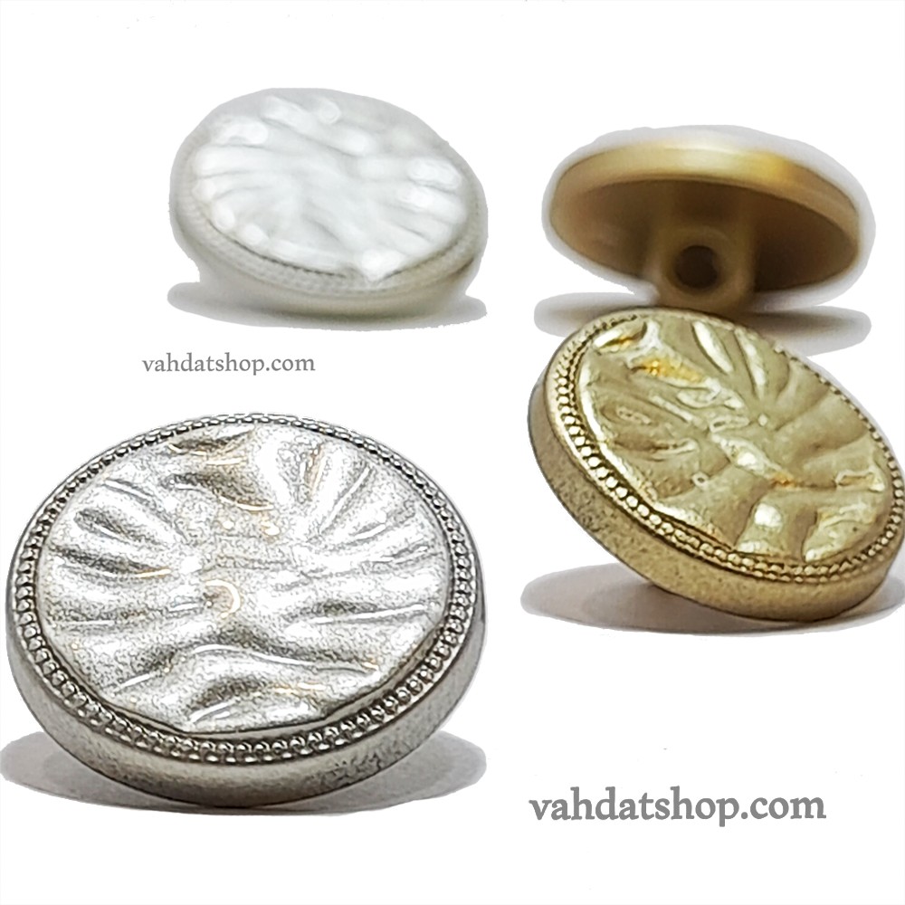 دکمه 2 سایز پایه دار طلایی نقره ای طرح خطی