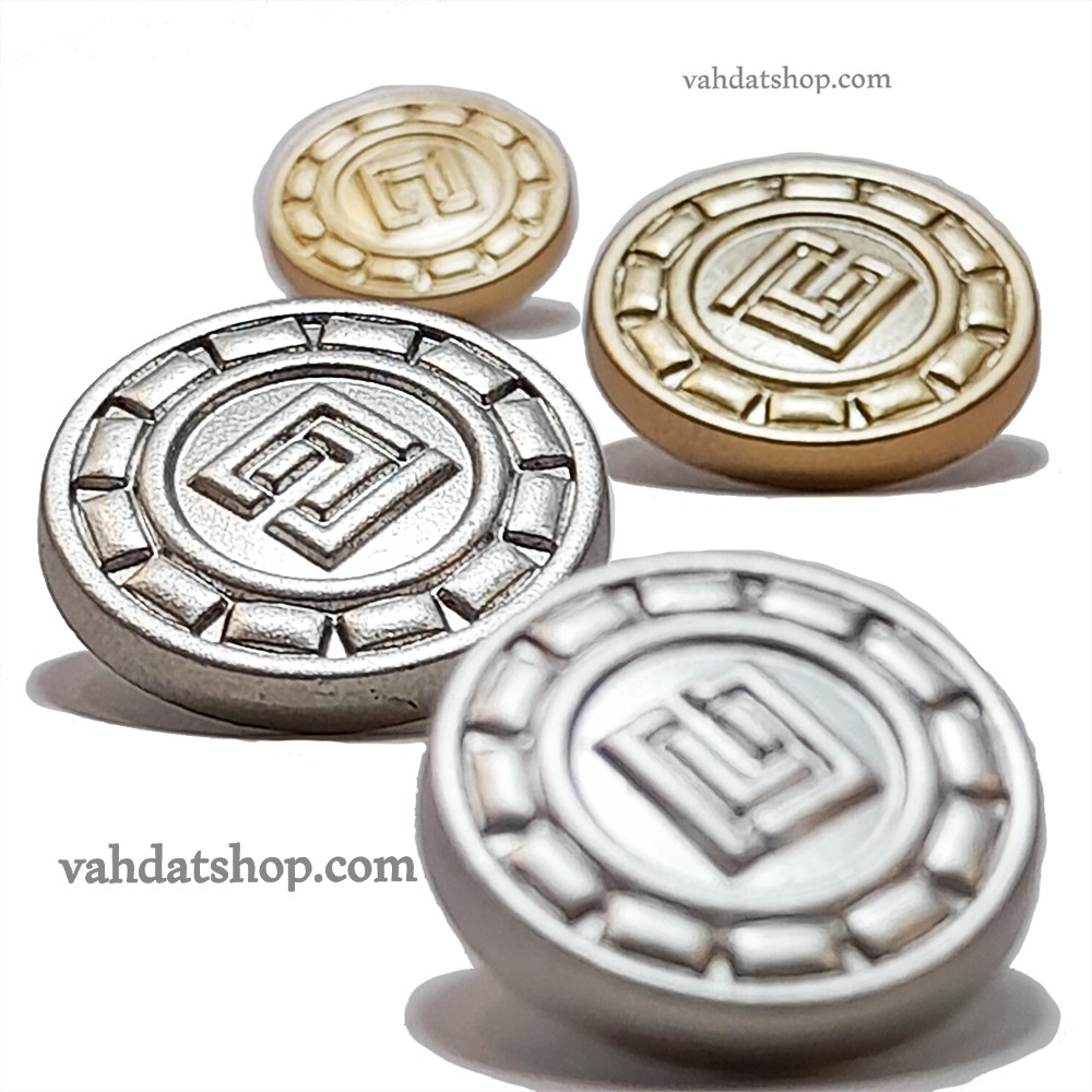 دکمه 2 سایز پایه دار طلایی نقره ای طرح G