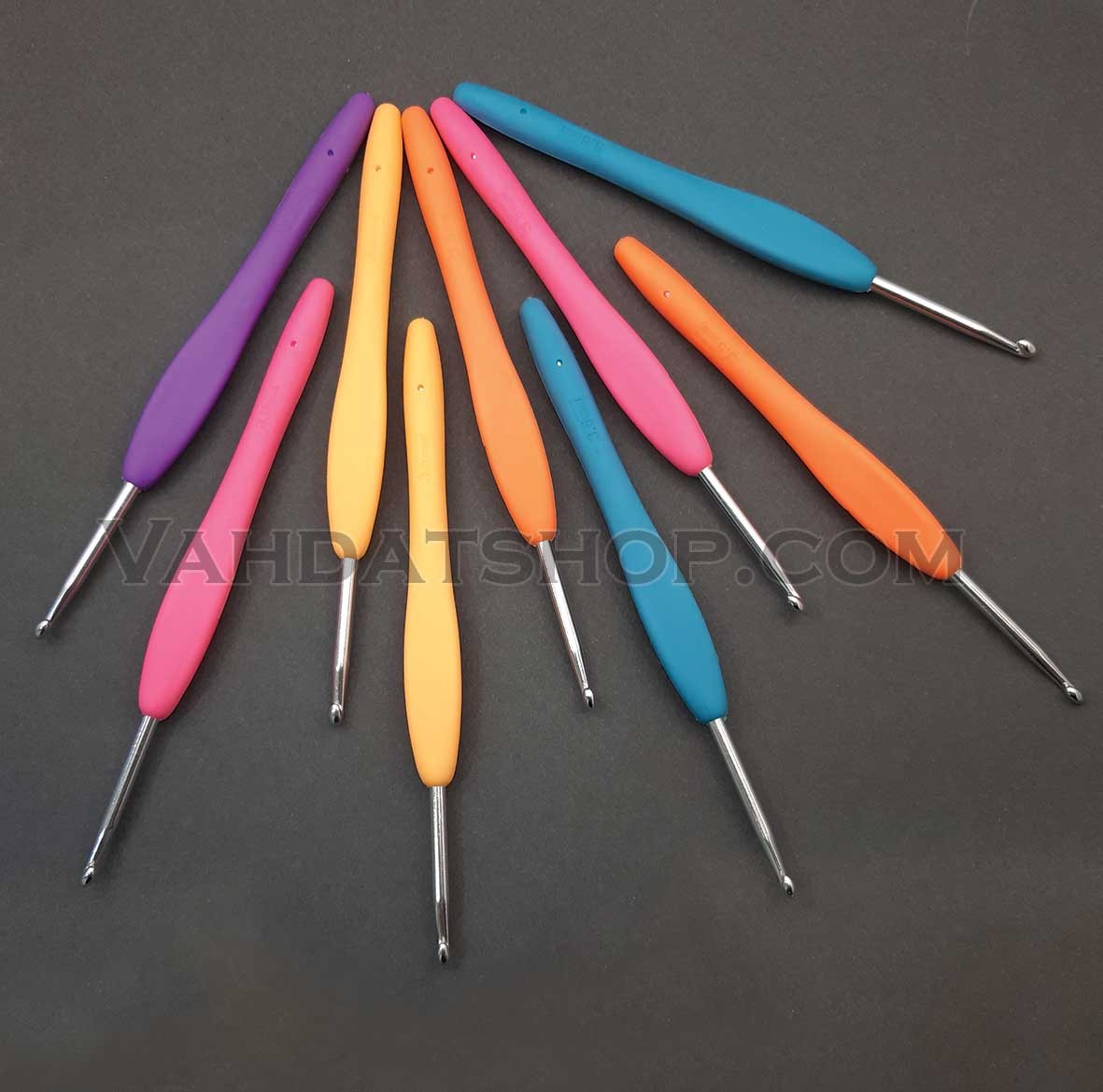از قلاب دسته ژله ای برای بافت شال و کلاه، دستکش، پاپوش، ساق دست،لباس های ظریف استفاده می شود. این قلاب با جنسی از تفلون و دسته ای ژله ای است که با توجه به نوع مصرف، سایز متفاوتی دارد. اندازه ی سر قلاب با افزایش شماره ی سایز آن افزایش میابد
