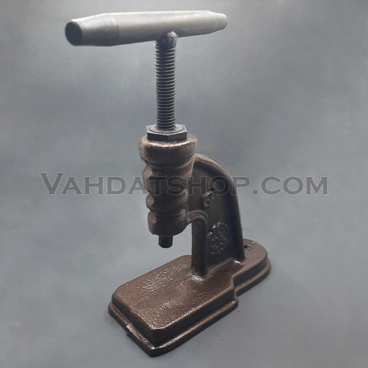 دستگاه پرس گردان برای دستگاهی با یک اهرم پیچی به قالب فشار آورده.این دستگاه برای دکمه زنی مورد استفاده قرار میگیرد و برای آن قالب جداگانه مخصوص دکمه پارچه ای باید تهیه شود.مزیت این دستگاه نسب به دستگاه پرس فشاری، گردان بودن اهرم آن و کمتر آسیب رسیدن به کتف میباشد.