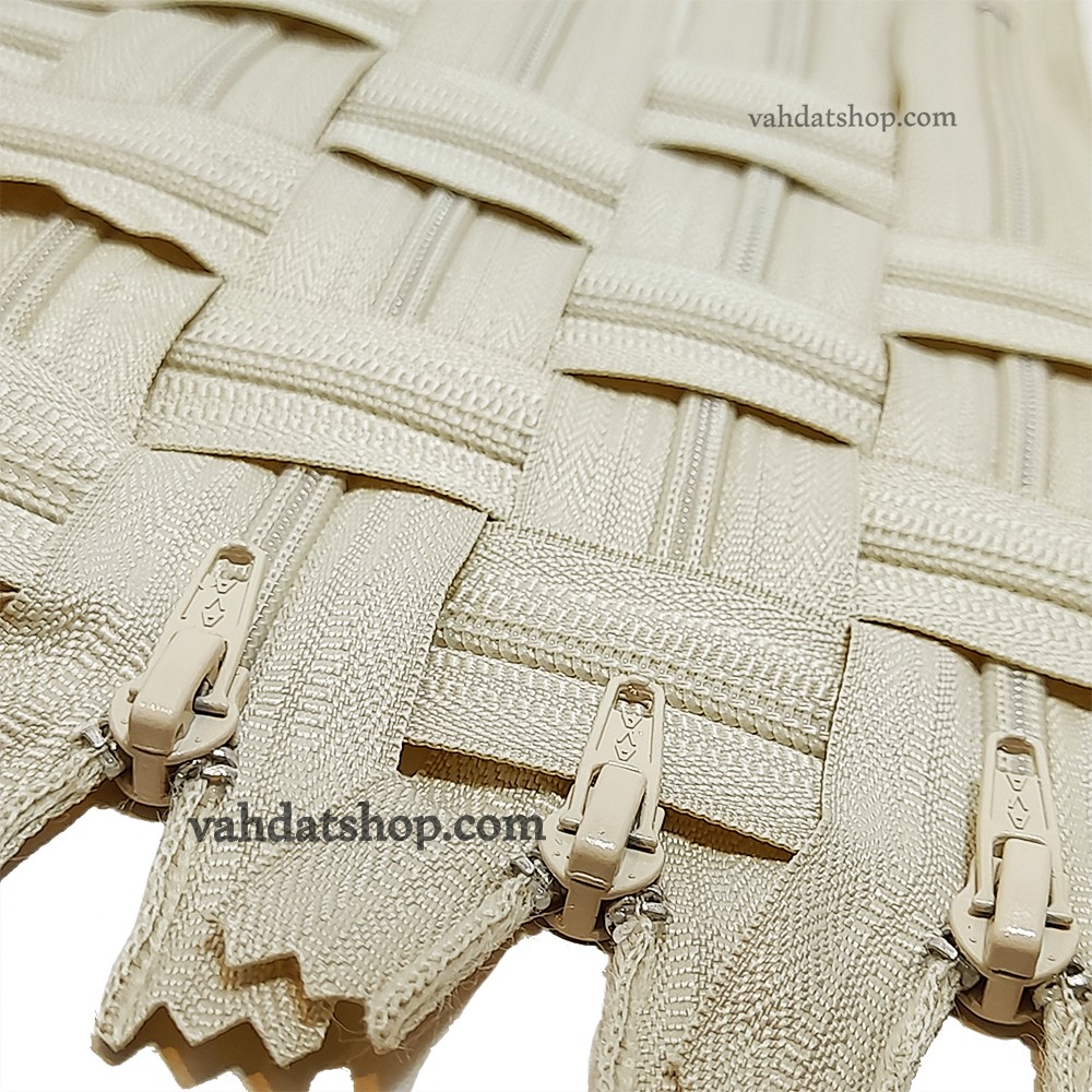 این نوع زیپ دارای دندانه های پلاستیکی و ماشین زیپ اتوماتیک است.
