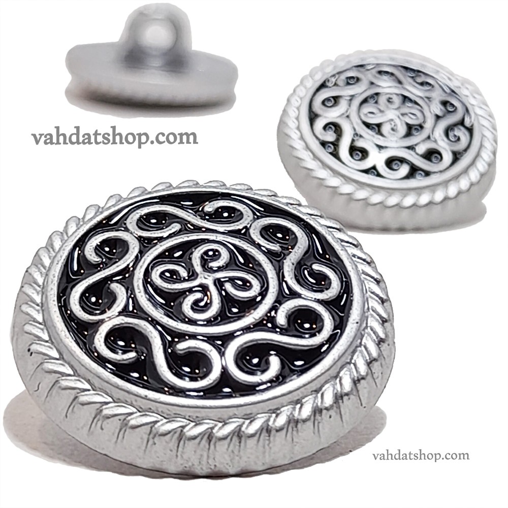 دکمه 2 سایز پایه دار نقره ای مشکی طرح 3