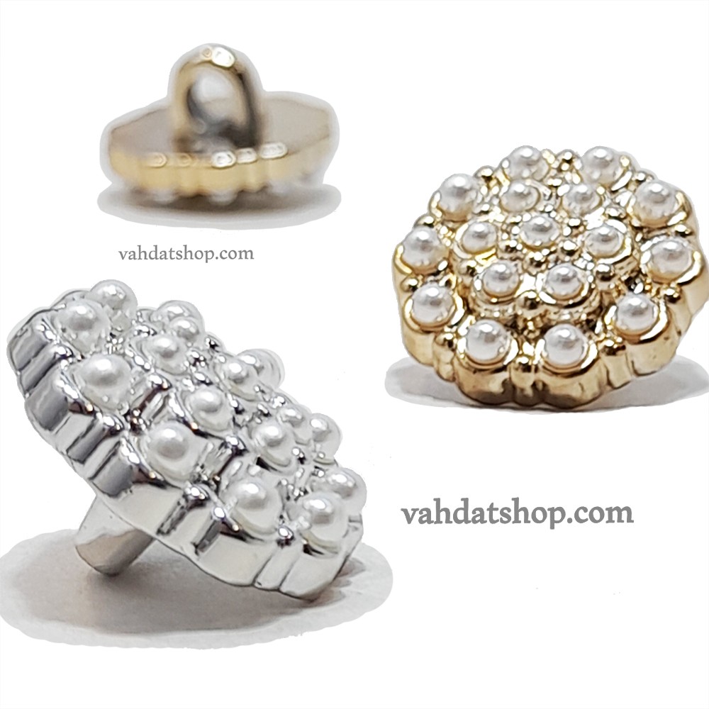 دکمه 2 سایز پایه دار طلایی نقره ای مروارید