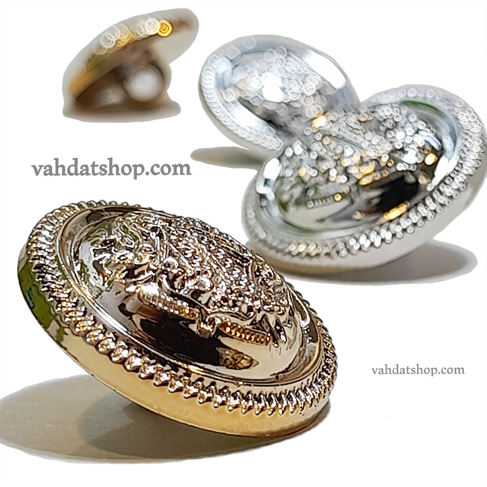 دکمه 2 سایز پایه دار طلایی نقره ای طرح 3